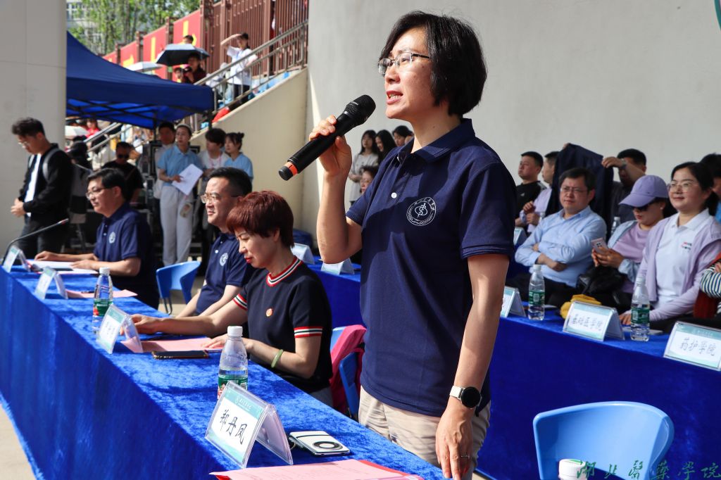党委书记郑丹凤宣布湖北医药学院、湖北医药学院药护学院第十三届春季运动会开幕。