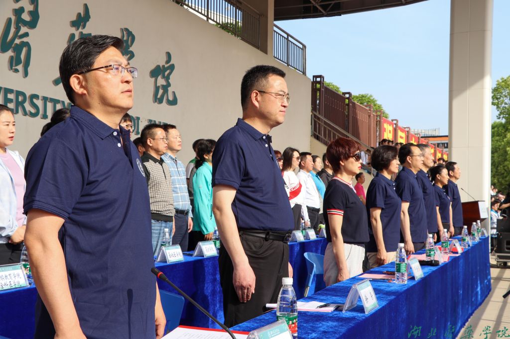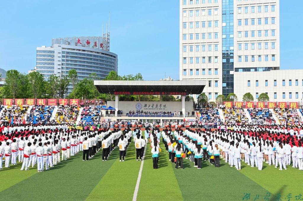 党委副书记、校长王云甫致开幕词,他指出,新时代的湖医药青年,当加倍珍惜韶光,以读书致远、以体育行稳,用强健体魄助力盛世长盛,以青春许江山如画。他强调,体育关乎国运兴衰,我们要为国家强盛而强健体魄,为曙天作序,骥步致远。体育关乎素质高下,我们要为素质提升而练身炼心,如长松卧壑,勇击风霜。体育关乎个人发展,我们要为美好未来而坚持锻炼,展青年火花,朝气蓬勃。湖医药人每一颗奔跑的汗水,都灌溉着医学事业的未来;每一个筑梦之势,都将被历史永远铭记!