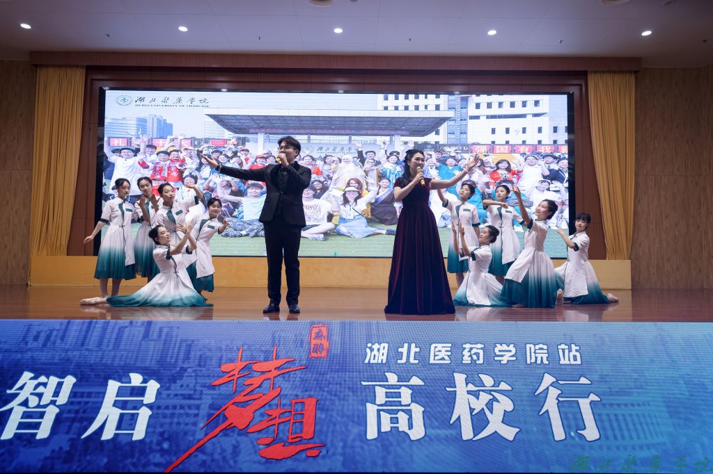 大爱传承,致敬榜样。曾因明教授与湖北医药学院党委书记郑丹凤为梦想导师颁发智启梦想高校行特邀导师荣誉奖杯,主办方捐赠公益助学基金30000元,激励麻醉学子勤奋刻苦学习本领。活动的尾声,湖北医药学院老师与麻醉学子共同表演,由师生共同填词创作的歌舞《守医学初心》,表达深深的感恩之情。