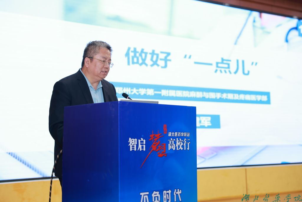 本网讯(文/学通社记者蒋寿欢 图/鲍晓宇)4月26日下午,湖北医药学院科教楼学术报告厅座无虚席,台上专家循循善诱、口若悬河地讲述,台下师生凝神聚气、聚精会神地聆听。这是一场盛大的“双向奔赴”,也是麻醉学前辈与晚辈的“精神传承”。《国际麻醉学与复苏杂志》编辑部主办,吴阶平医学基金会协会与《古麻今醉》承办的“智启梦想高校行”公益活动在我校开启第七站之旅。徐州医科大学、华中科技大学、首都医科大学、海军军医大学、北京大学、郑州大学等单位知名麻醉学专家教授齐聚于此,与麻醉专业学子面对面,分享经验教诲,智启学子人生。