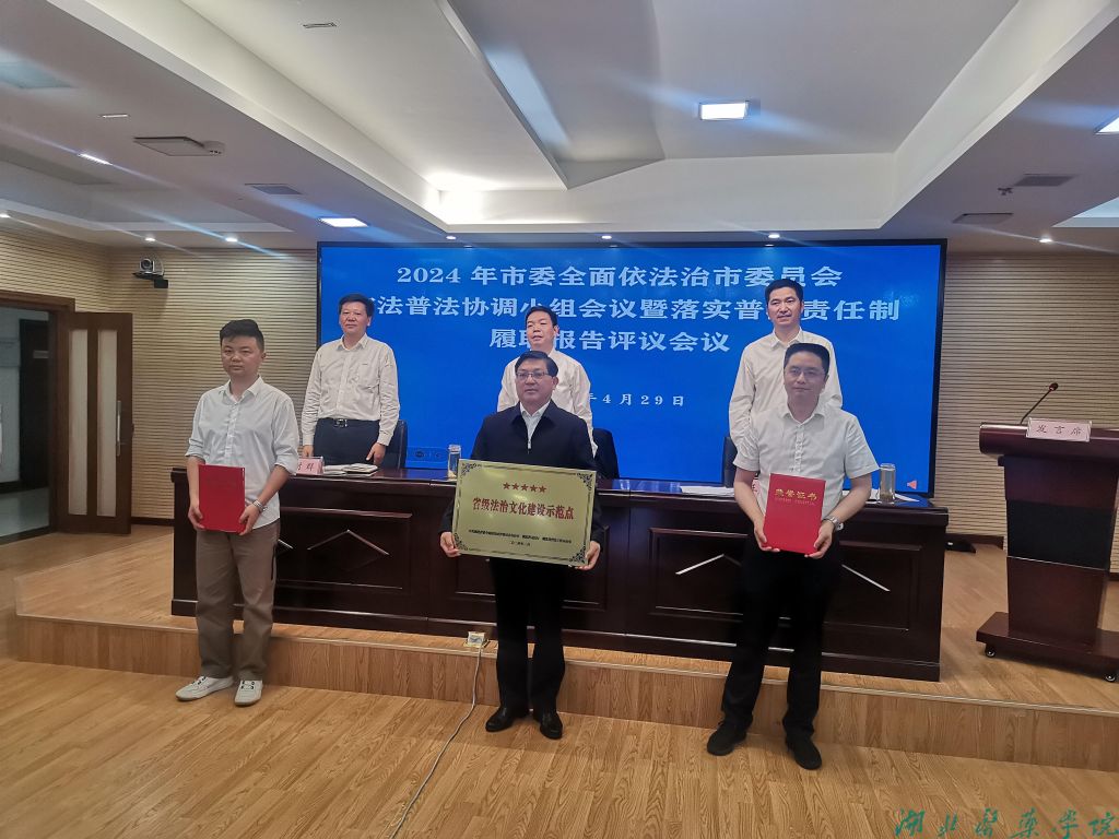 现如今,我校已初步形成“遇到事情找法,解决问题用法,化解矛盾靠法”的良好氛围,学校法治体系和治理能力现代水平显著提升,师生权益得到有效保护。2022年学校荣获“全省普法工作表现突出单位”荣誉称号;2023年入列湖北省依法治校示范校创建,荣获全省宪法卫士活动优秀组织奖;2024年获批成为省级五星级法治文化建设示范点,被评为全市“八五”普法中期表现突出单位,雷怀成教授荣获全国公共法律服务工作先进个人称号。在今后的法治教育工作中,学校将以湖北省法治文化建设示范点创建成功为契机,全面提升依法治校水平,为建成高水平有特色的湖北医药大学提供坚强的法治保障。(审稿 张海蛟)