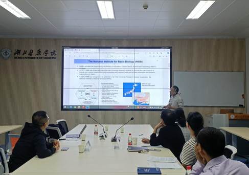 严世荣介绍了我校基本情况,并对Mitsuyasu Hasebe教授多年来对我校科研工作的支持指导表示感谢。Mitsuyasu Hasebe教授介绍了日本国立基础生物学研究所的研究领域、学术成果及国际科研合作情况,回顾了与我校药用植物及进化遗传学十堰市重点实验室的合作历程。