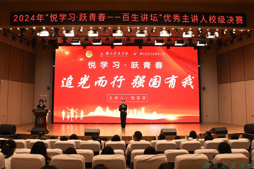 郑丹凤总结讲话,希望能有更多的湖医药学子加入主讲人行列中,让湖医药的“百生讲坛”成为理论学习的平台、实践锻炼的舞台、传播真理的讲台。广大湖医药青年要以勇锐盖过怯弱,以进取压倒苟安,在向光而行的青春道路上以信念为基,勇做新时代的筑梦人;以博学为要,敢为新时代的追梦人;以创新为重,争当新时代的圆梦人。(审稿 陈璞 邱爽)