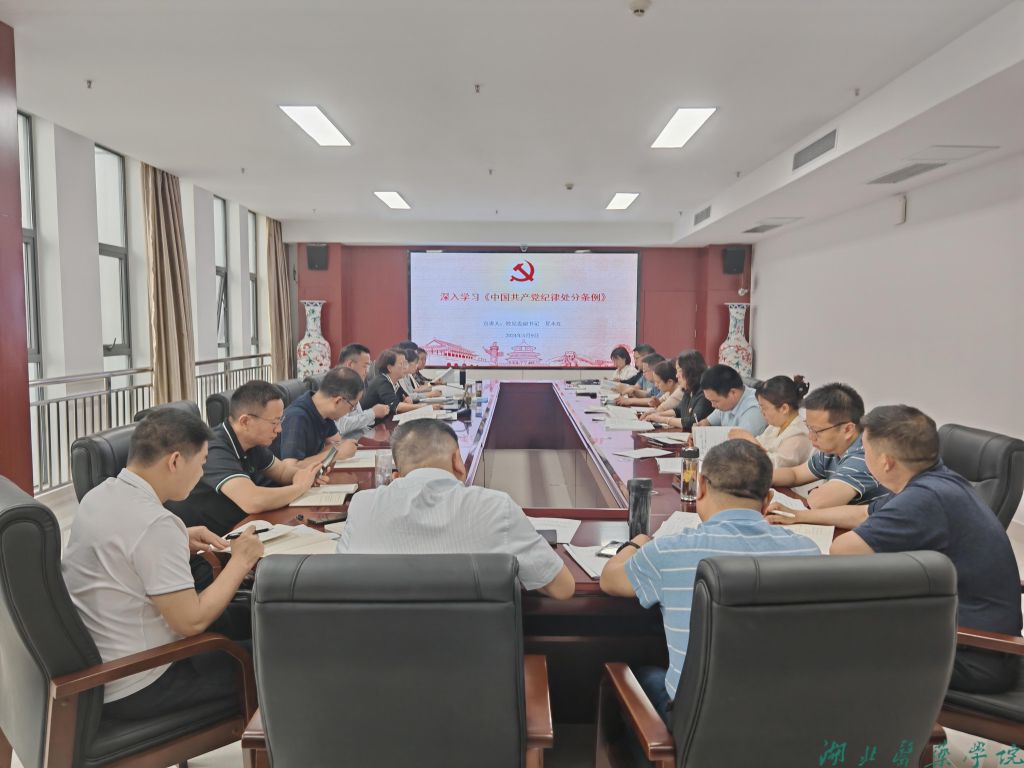 徐荣指出,党纪学习教育,是加强党的纪律建设、推动全面从严治党向纵深发展的重要举措。纪检监察机关肩负着维护党的纪律的重要职责,《条例》是监督执纪问贵的重要依据,必须坚持更高标准、更严要求,先学一步、深学一层,发挥好示范带动作用。他强调,一是要深度把握《条例》的政治属性。全体专兼职纪检干部要把开展党纪学习教育作为重要政治任务,坚持更高标准、更严要求,做到熟记于心、牢记于行,自觉在学纪、知纪、明纪、守纪上带好头。二是要不断增强遵规守纪的自觉。纪检干部要带头把遵规守纪刻印在心,内化为日用而不觉的言行准则,深入学习领会党纪背后的价值观念,自觉用党章党规党纪校正思想和行动,不断增强政治定力、纪律定力、道德定力和抵腐定力。要涵养更高的自律修为,落实更硬的制度规范,接受更严的监督约束。三是要务求学习的针对性实效性。要集中精力、融会贯通学。要把新修订的《条例》与总书记关于党的纪律建设的重要论述结合起来学,与历次《条例》修订版对照起来学,进一步加深对总书记关于党的自我革命的重要思想的认识,加深对纪检监察机关职责使命的认识。要原原本本、逐章逐条学。要深刻理解纪律规定的精髓要义,把《条例》蕴含的严明政治纪律和政治规矩、加强全方位管理和经常性监督、激励党员干部担当作为、党性党风党纪一起抓、促进执纪执法贯通等要求搞明白,切实提升依规依纪依法履职能力和水平。要用心钻研学、学深学透学。把自己摆进去、把职责摆进去、把工作摆进去,加强自我检视,强化警示教育,用党的纪律校正思想和行动,在自觉守纪上做示范。要联系实际、统筹兼顾学。把开展党纪学习教育与贯彻落实中央纪委和省、市、学校纪委全会精神结合起来,与当前的学校各项重点工作统筹起来、一体推进,切实把学习教育成果转化为推动纪检监察工作高质量发展的实际成效。四是要在纪律教育上履职尽责。以党纪学习教育为契机,把纪律教育推向纵深,推动党员干部强化遵守纪律的自觉。要加强解读培训、加强警示教育、加强监督检查。