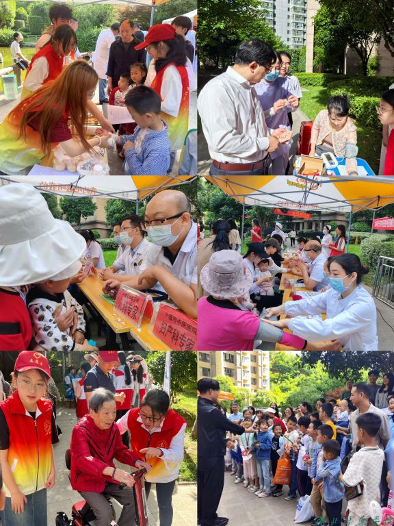 上午8点半,“健康集市”正式开张。在十堰市中医医院、重庆路社区卫生服务站、爱尔眼科医院、胜元口腔、爱朵智能等单位的“健康摊位”前,小区居民纷纷来到现场咨询问诊,医护人员有条不紊地忙碌着,为居民提供义诊、健康咨询、用药指导,免费测量血压、血糖,宣传预防保健和养生知识、体验智能辅助设备,还为居民提供视力检测、眼筛查、口腔健康检查等服务。我校“彩虹”灾害医学救援服务队、“后疫询卫•基层访医”实践队、同心圆梦志愿服务队、晨曦志愿服务队、南丁格尔志愿服务队、因“齿”出彩志愿服务队、“愈见初心”回声计划、“素问”创新创业团队等8支学生团队在现场点位开展丰富多彩的志愿服务活动,开展互动答题,协助医护人员上门为行动不便的老人提供义诊服务。居民朋友们参加“健康集市”活动,观看爱心企业带来的乐器表演、防灾绘本剧等节目,参加科普互动游戏。通过健康打卡,获得健康积分,参与礼品抽奖,收获“健康礼包”,现场活动内容丰富,气氛十分热闹。