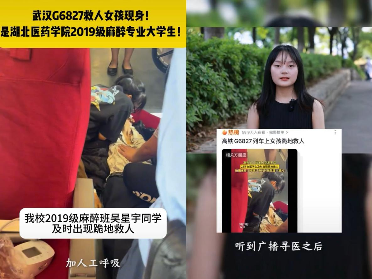 本网讯(通讯员 姜慧林 张慧丽)素衣执甲,生命至上。2024年5月15日,从汉口开往十堰的G6827次列车上,一位老人突发疾病失去意识,湖北医药学院药护学院第一临床学院2019麻醉学2班的吴星宇同学立即上前展开施救。