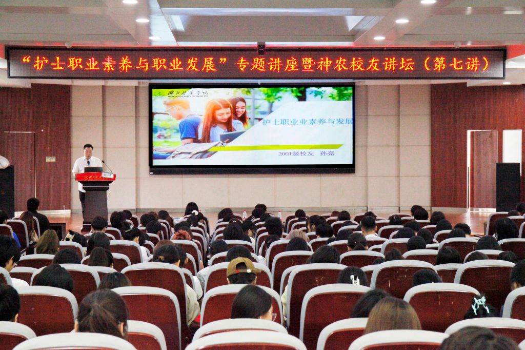 本网讯(通讯员 李龙霞 刘欣阳 吴思雨)党的二十大明确要求把青年工作作为战略性工作来抓,推动青年高质量发展,武装青年的思想是重要支点。生涯筑梦,引领未来。为进一步落实立德树人根本任务,帮助学生树立职业生涯规划意识,明确人生发展方向和职业目标,响应2024年“我们的护士,我们的未来,护理的经济效力”国际护士节主题,5月14日,湖北医药学院成功举办“护士职业素养与职业发展”专题讲座暨神农校友讲坛。此次活动邀请护理学院2004届校友、武汉市第六医院重症医学科护士长孙亮和中华护理学会循证护理专委会青年委员、华中科技大学同济医学院附属协和医院重症医学科专科护士米元元作讲座。护理学院领导、全体教职工和2023级本科生参加。
