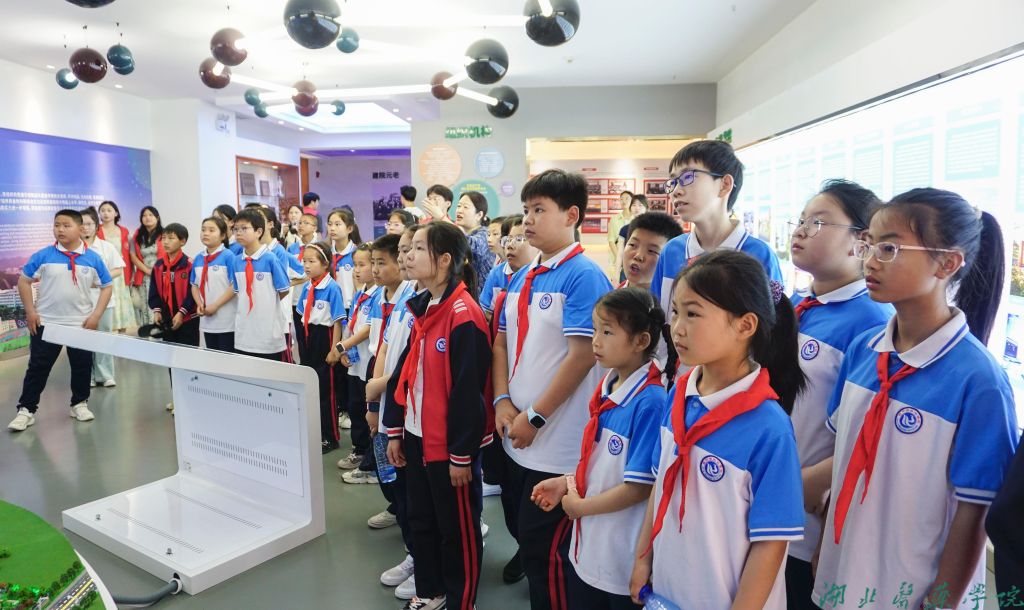 上午10时左右,孩子们到达湖北医药学院。他们从海棠苑、神农公园、流水游园到图书馆一路游览,赏花观景品书香,童稚的脸上写满了兴奋与新奇。中午在体验大学食堂美食并短暂休整后,孩子们继续研学之旅。