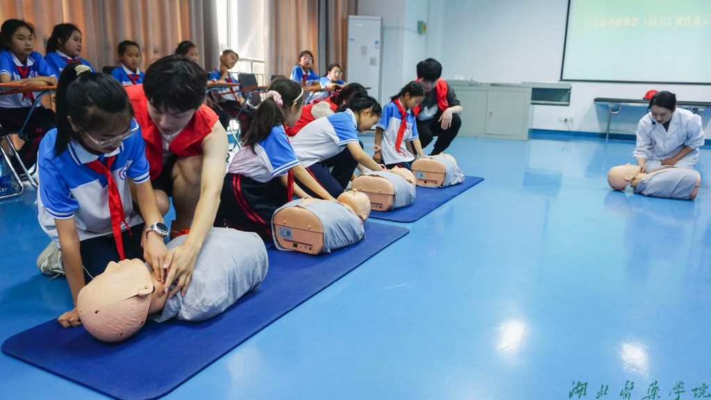 “你知道海姆立克急救法吗?你知道人体全身一共有多少块骨头吗?”在生命科学馆,师生们通过馆内志愿者的讲解和刘琪老师的生命教育课《生命教育三部曲》,详细了解了人类进化史、胚胎发育史、解剖标本等不同领域的知识,领略了生命的起源与奥秘。参观过程中,人体VR虚拟体验科技、骨关节感应互动系统、实体人体器官模型、人体拼装等多种结合现代化技术的新奇体验方式,深受孩子们的喜爱。走进校史馆,孩子们在工作人员的指引下有序参观,了解学校深厚的历史积淀和文化底蕴。最后,孩子们在临床技能中心参观了急救科普基地和灾害救援情景模拟区,在志愿者的帮助下学习急救技能,他们近距离感受医学,认真聆听,踊跃尝试,亲身体验了现代医学技能培训的先进性和科学性。