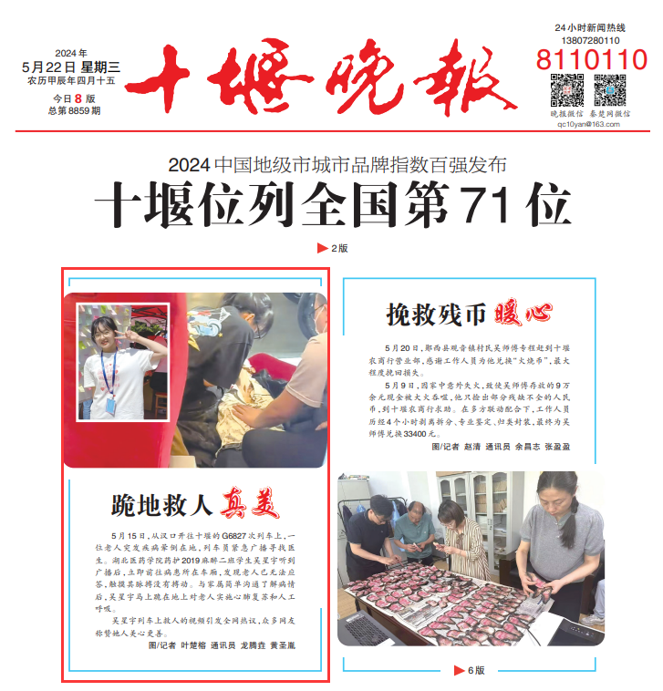 5月15日,从汉口开往十堰的 G6827次列车上,一位老人突发疾病晕倒在地,列车员紧急广播寻找医生。湖北医药学院药护2019麻醉二班学生吴星宇听到广播后,立即前往病患所在车厢,发现老人已无法应答,触摸其脉搏没有搏动。与家属简单沟通了解病情后,吴星宇马上跪在地上对老人实施心肺复苏和人工呼吸。