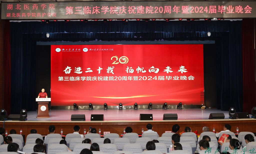 本网讯(文/朱力 易文杰 图/鲍晓宇 学通社记者 刘益 张潇月 高达)二十年栉风沐雨,二十年春华秋实。5月26日晚上,第三临床学院在学子会馆大礼堂举办“奋进二十载 扬帆向未来”庆祝建院20周年暨2024届毕业晚会。党委书记郑丹凤,党委常委、统战部部长谭艳,党委常委、组织部部长张海蛟,直属人民医院领导出席活动,第三临床学院1800余名师生参加活动。