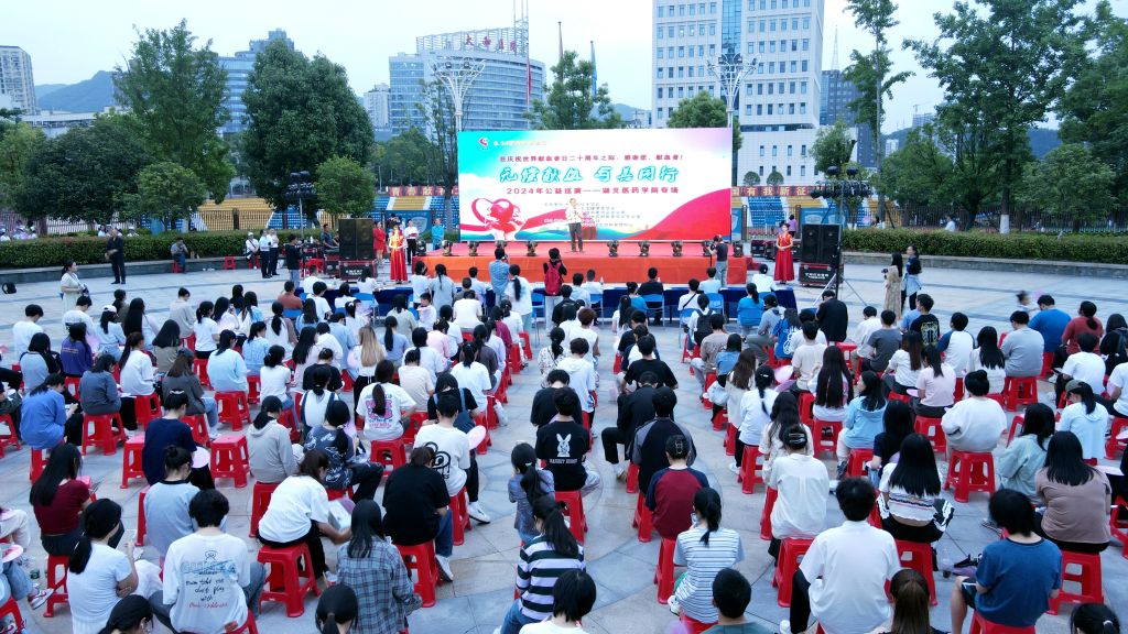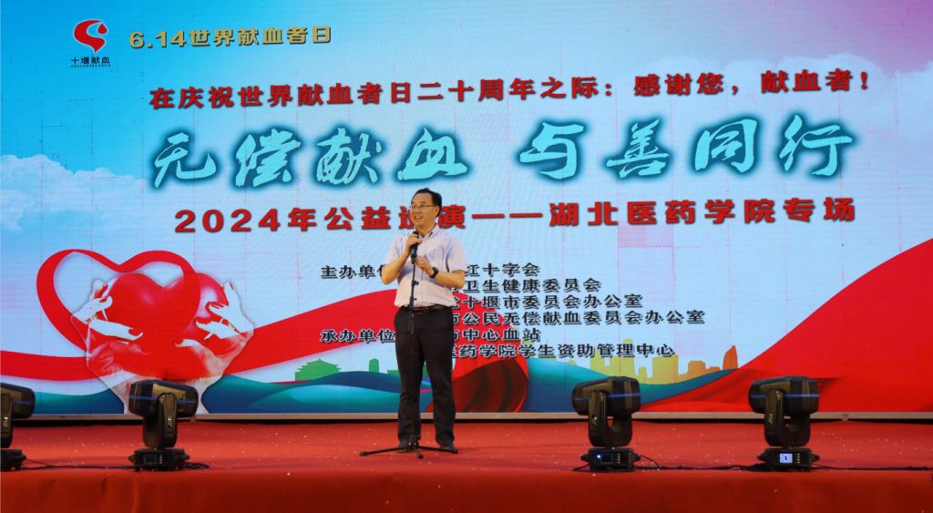 本网讯(文/王正 图/学通社记者 闫焜翔 高达 李佳仪)5月31日,十堰市红十字会、农工党十堰市委员会、十堰市中心血站来我校开展无偿献血启动仪式暨“无偿献血、与善同行”专场公益巡演,党委副书记、校长王云甫,十堰市红十字会党组成员、专职副会长詹秀伟,农工党十堰市委员会副主委、十堰市中心血站站长池雄,学工部、校团委、资助管理中心主要负责人以及300名青年学生参加活动。