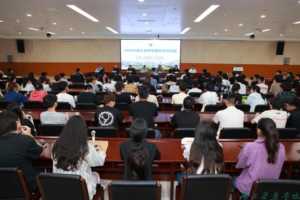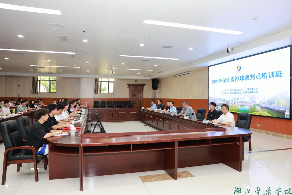 本网讯(文/王于桦 图/鲍晓宇)6月1日,湖北省排球裁判员培训班(第七期)在湖北医药学院开班,校党委常委、统战部部长谭艳,湖北省排球协会会长、湖北省体育科学研究所所长李健出席开班式。
