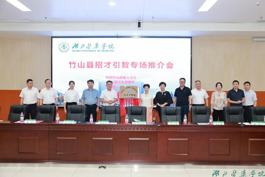 竹山县卫健局与我校签订了人才工作站共建协议,程晓兵和严世荣共同为湖北医药学院竹山人才工作站揭牌。今后,政校双方将在人才培养、实习实训、科研合作等方面开展更加紧密的合作,共同推动区域医疗卫生事业的发展,为社会培养更多优秀的医学人才。(审稿徐秀娟)