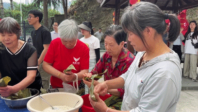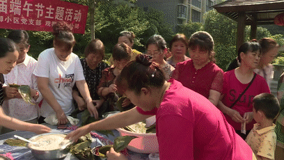在广电观御小区,小区物业公司准备好粽叶、糯米、蜜枣等食材,居民们做成一个个饱满的粽子,让小朋友体验点朱砂、抹雄黄等传统习俗,为社区行动不便的老人上门送上节日祝福。