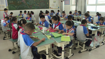 在东风43小学教室里,学生们通过包粽子、画彩蛋等多种形式,感受传统文化的魅力。学生在老师带领下,剪出了一幅幅与端午文化相关的图案,五年级学生在教室门前插上艾草,用彩笔在鸭蛋上描绘出各种端午元素的卡通人物图案,老师还将五彩绳系在同学们的手腕上,寓意平安吉祥。