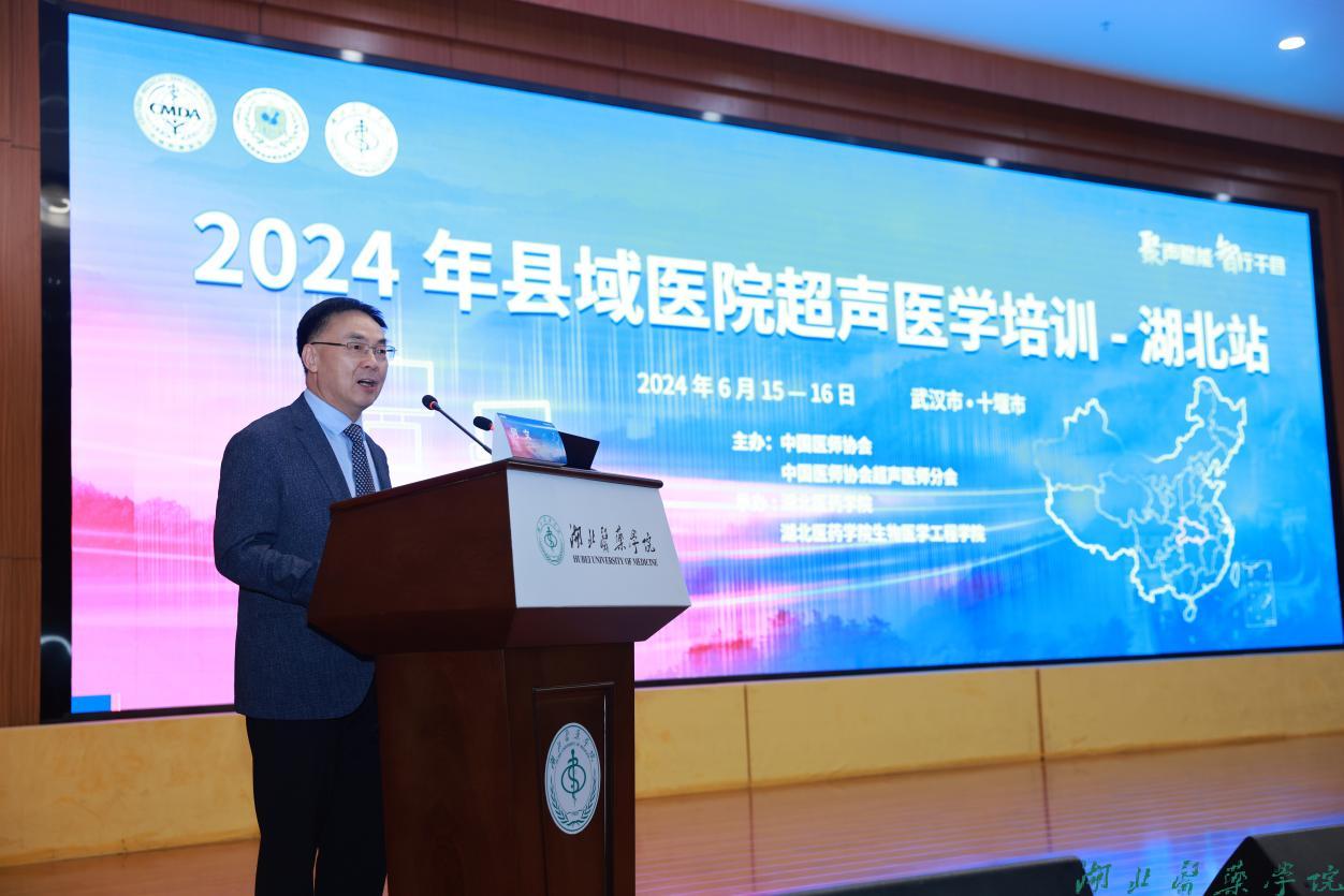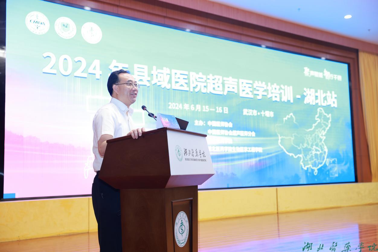 本网讯(文/邓闻达 图/鲍晓宇)6月15日,由中国医师协会超声医师分会主办、湖北医药学院承办的“2024全国县域医院超声医学培训”启动会在科教楼学术报告厅开幕。党委副书记、校长王云甫,原党委书记涂汉军,党委常委、统战部部长谭艳,生物医学工程学院院长、直属附属人民医院院长孙泽群,中国医师协会超声医师分会会长何文等出席大会。