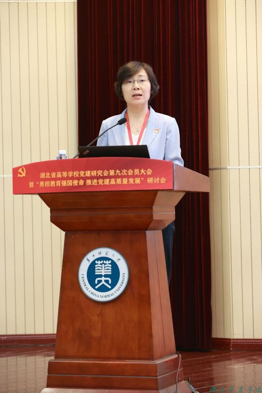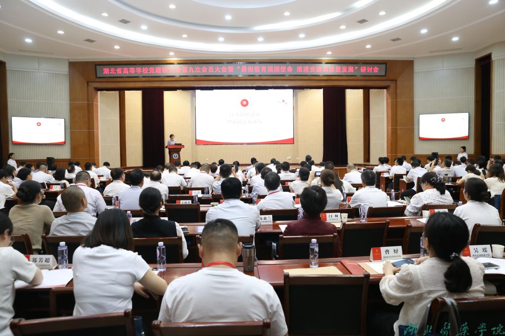 本网讯(通讯员 山竹)6月20日,湖北省高等学校党建研究会第九次会员大会暨“勇担教育强国使命推进党建高质量发展”研讨会在华中师范大学召开。来自全省110多所高校的200余名代表参会。教育部思政司党建统战处处长林成涛,湖北省委党建办副主任彭桂红,省委教育工委专职副书记、省教育厅党组成员张幸平,省民政厅社会组织管理局副局长钱华志等出席会议。我校党委书记郑丹凤在大会上交流发言,并当选研究会第九届理事会常务理事。