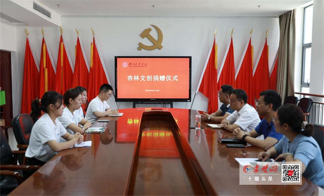 湖北医药学院教育发展基金会秘书长陈磊代表学校接受捐赠,感谢杏林文创团队对学校教育事业以及好人文化建设的支持。湖北医药学院党委学工部部长陈璞高度赞扬学生反哺学校的行为,学生的善行义举彰显学校育人成效,希望团队成员坚持创新、志存高远,勤学善干、逐梦笃行。