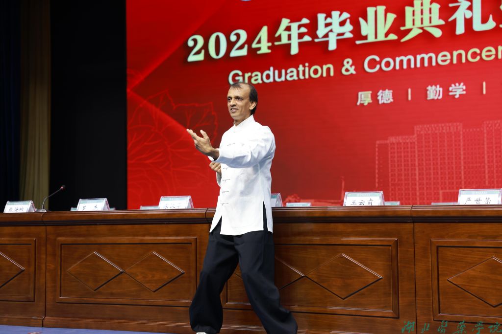 典礼开始前,暖场节目《百战成诗》演奏出磅礴的气势与激情,毕业生们的歌曲串烧青春而活力。1989级校友代表瞿新为母校献唱,尽诉他对母校的感恩之情,使人动容;毕业班级辅导员们带来的音诗画表演《写给毕业生的一封信》令在场师生动容落泪;保安大叔、宿管阿姨一个个熟悉的面孔走上台前,诉说着对学生们的不舍与留恋,毕业生代表为他们献上花束,感谢他们这些年如同父母般给予同学们的关心关爱;毕业留学生的家长从异国远道而来,为大家带来饱含对中国文化热爱之情的咏春拳,现场掌声不绝于耳。