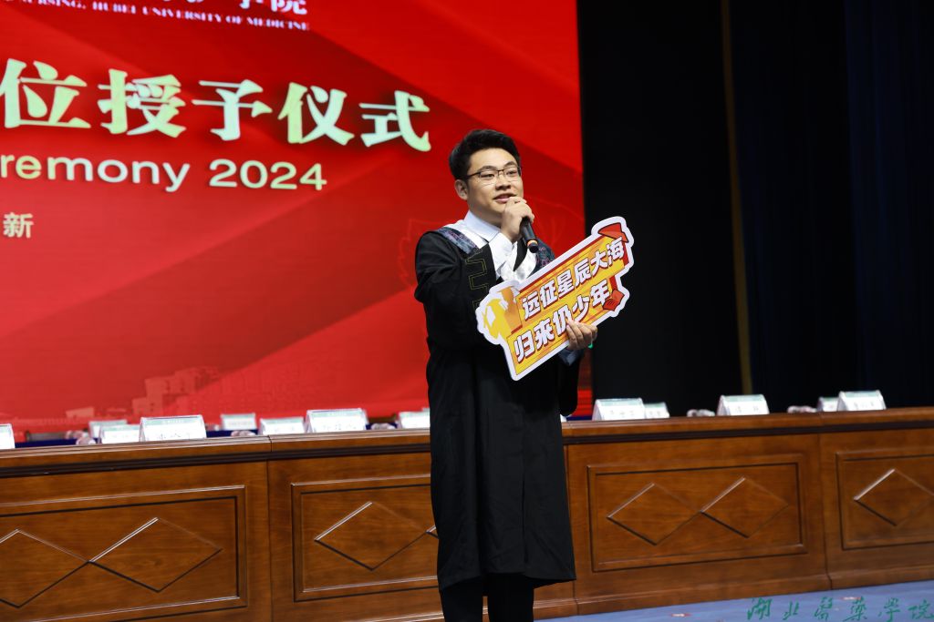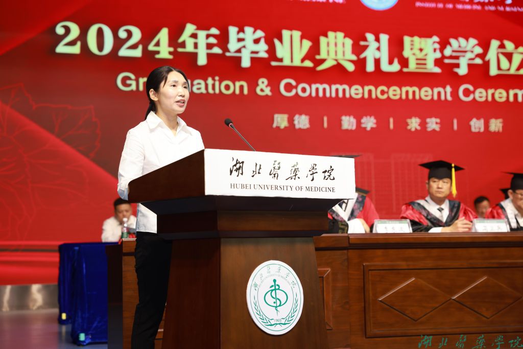 本科毕业生代表张润景、硕士毕业生代表曹婧芳、毕业生家长代表王晓冬表达对学校和老师悉心栽培的感激之情。教师和导师代表丁妍老师表达对毕业生们的美好祝愿,祝福他们行而不辍,未来可期。1989级校友张良清为毕业生送上祝福,以厚德为心,以求实为舵,以创新为帆,扬帆远航,驶向医学的星辰大海。原党委书记涂汉军为2024届毕业生校友联系人颁发聘书。