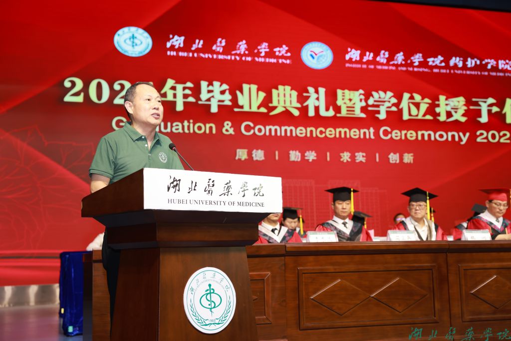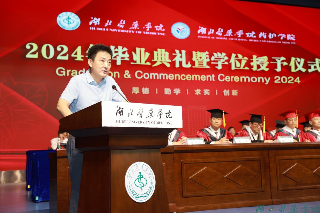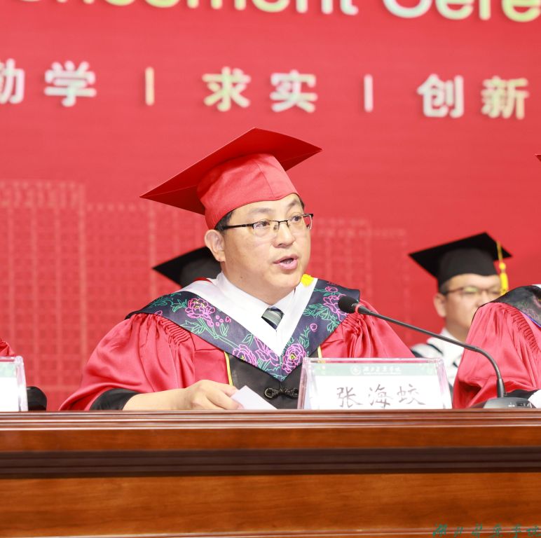 全体在家校领导,附属医院领导,校学位评定委员会委员,各职能部门负责人,各学院负责人和分管学生工作领导,毕业班级辅导员,教师代表,2024届毕业生及家长代表共千余人参加。毕业典礼由党委常委、组织部部长张海蛟主持。