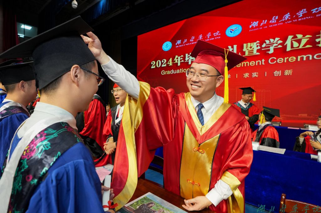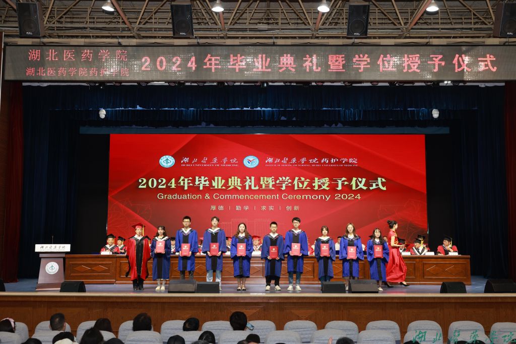 本网讯(文/学通社记者 陈佳雨 图/鲍晓宇 学通社记者 汪晓涵 杨欣妮 袁子航 刘益 张潇越 朱名宇)医山为路,征踏新途。6月22日上午8:30,湖北医药学院、湖北医药学院药护学院2024年毕业典礼暨学位授予仪式在学子会馆三楼举行。4189名毕业生满载收获与希望,踏上人生新征程。