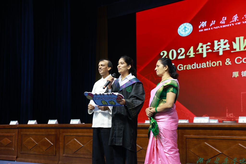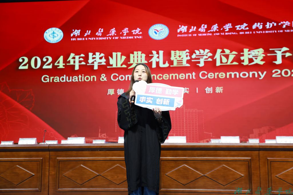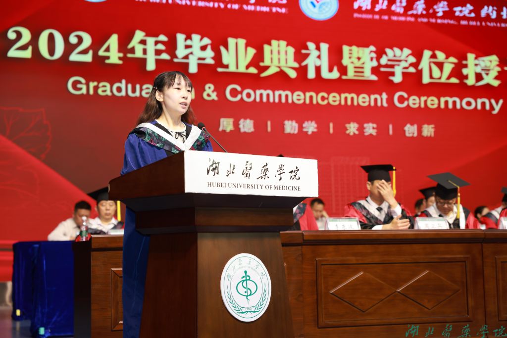 本科毕业生代表张润景、硕士毕业生代表曹婧芳、毕业生家长代表王晓冬表达对学校和老师悉心栽培的感激之情。教师和导师代表丁妍老师表达对毕业生们的美好祝愿,祝福他们行而不辍,未来可期。1989级校友张良清为毕业生送上祝福,以厚德为心,以求实为舵,以创新为帆,扬帆远航,驶向医学的星辰大海。原党委书记涂汉军为2024届毕业生校友联系人颁发聘书。