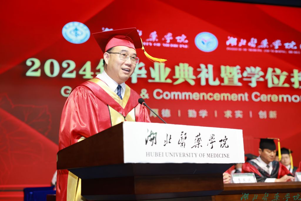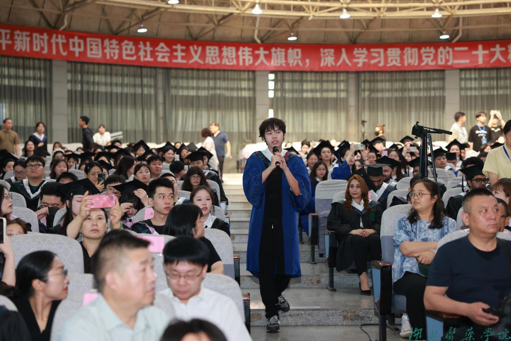 全体在家校领导,附属医院领导,校学位评定委员会委员,各职能部门负责人,各学院负责人和分管学生工作领导,毕业班级辅导员,教师代表,2024届毕业生及家长代表共千余人参加。毕业典礼由党委常委、组织部部长张海蛟主持。