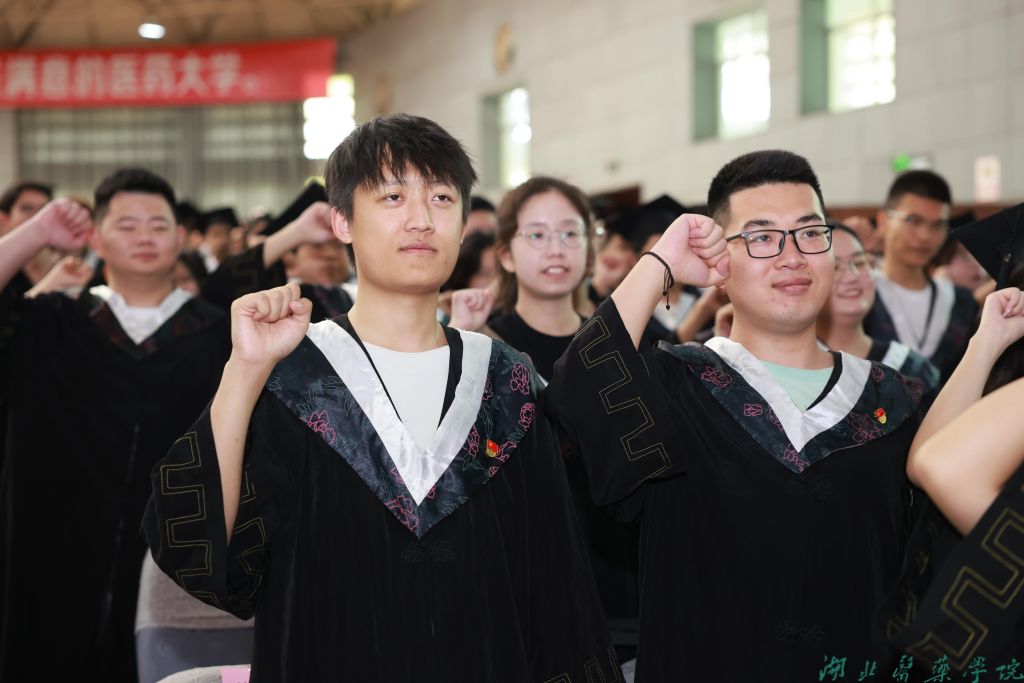 “健康所系,性命相托……”典礼最后,全体毕业生重温医学生誓词,立志为医学事业奉献人生华章,以智慧和勇气勇攀医学高峰,为人类健康带去希望和温暖。