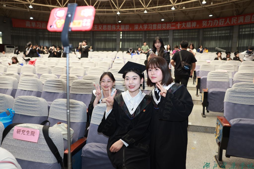 学位授予仪式上,校领导、校学位评定委员会委员为在场毕业生们逐一拨穗,颁发学位证书,并与毕业生合影留念。