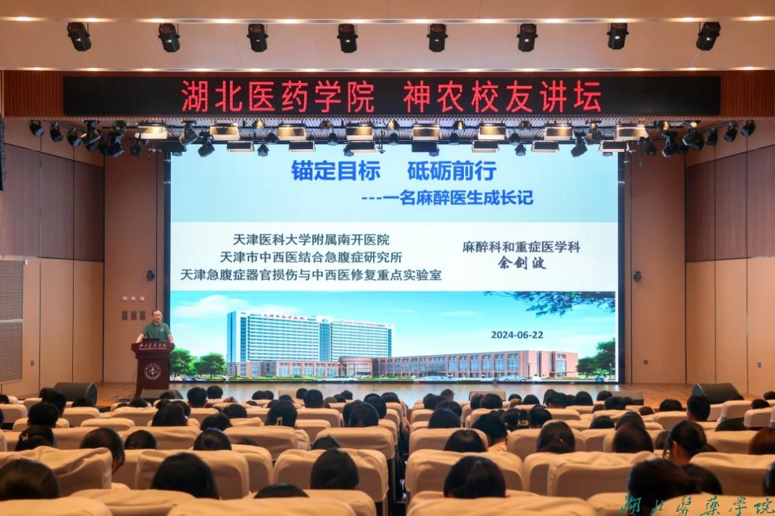 树高千尺,根脉相连。下午三点,校友余剑波做客“神农校友讲坛”,做题为《瞄定目标 砥砺前行—一名麻醉医生的成长记》的辅导报告,党委常委、统战部部长谭艳、校友办和300余名师生代表聆听讲座。余剑波围绕自己的成长轨迹,讲述对医疗事业的热爱与坚守,勉励同学们“走自己的路,莫问前程,前程不会辜负努力”。
