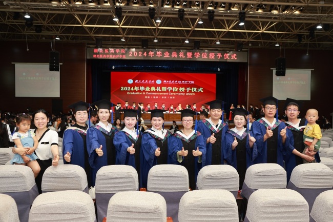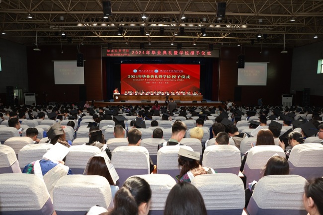 全体在家校领导,附属医院领导,校学位评定委员会委员,各职能部门负责人,各学院负责人和分管学生工作领导,毕业班级辅导员,教师代表,2024届毕业生及家长代表共千余人参加。