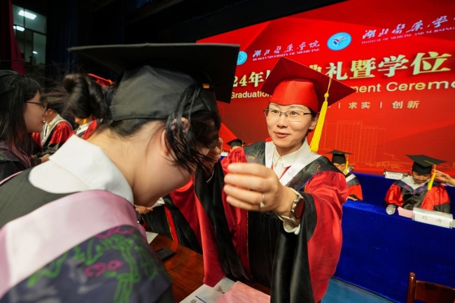 谭艳为学生拨穗