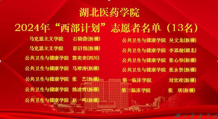 毕业典礼上,第一临床学院的卜梦冉和公共卫生与健康学院的姚凌霄代表我校2024年西部计划志愿者,共同喊出“以青春之名,赴西部之约,传承建校元老的燃灯者精神,让青春在党和人民最需要的地方绽放绚丽之花!”的青春誓言。