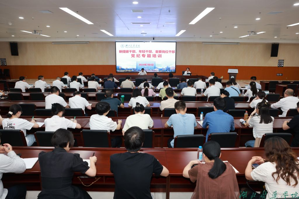 本网讯(文/赵峥 图/鲍晓宇)7月4日,学校组织为期一天的新提拔干部、年轻干部、关键岗位干部纪律培训,近百名党员干部参加培训。