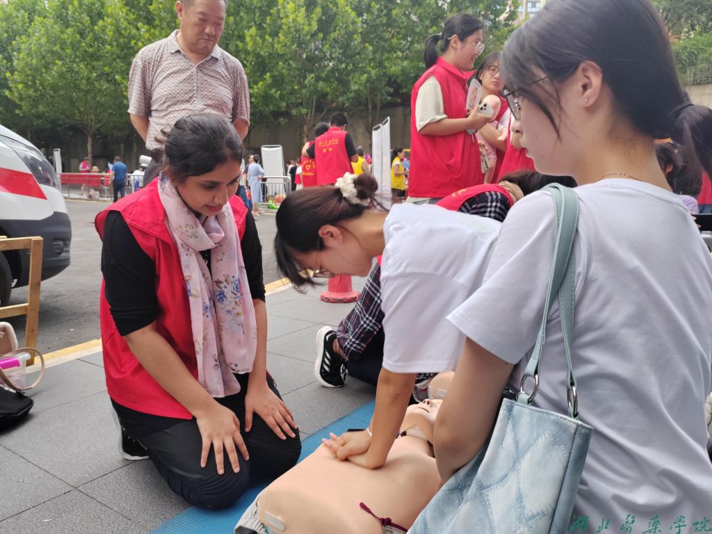 我校“后疫询卫•基层访医”实践队、同心圆梦志愿服务队、晨曦志愿服务队、“彩虹”灾害医学救援服务队、微光成炬志愿服务队、雏鹰反诈志愿服务队、巨鲸落•万物生志愿服务队以及十堰市慈善总会等多支志愿服务团队在现场点位开展互动游戏、健康知识答题、急救知识培训、反诈宣传等丰富多彩的志愿服务活动。