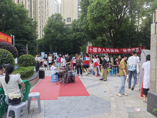 湖北医药学院直属附属人民医院、湖北医药学院附属妇幼保健院、十堰市慈善总会、茅箭区文体局、吉祥社区卫生服务站、爱尔眼科医院、胜元口腔、一康皮肤病医院、佳康诊所等14家单位参加义诊、健康知识科普、急救技能现场教学、便民服务等活动。