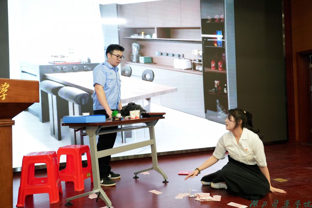 在案例展示环节中,三名学生通过情景剧的形式展示了在党纪国法的严正审视下医疗卫生界传奇人物金玉莲的陨落。在案例分析和答辩现场,王茵等三人从多角度剖析问题,以清晰的逻辑和精准的观点阐述见解,不仅对党纪法规有着准确的理解,更能将理论与实际案例相结合,铿锵有力地表达了对丧失了理想信念,忘记了初心使命,被权力、金钱和私欲所迷惑的医疗届党员干部的痛恨和惋惜,更表达了作为医学生的使命和担当,要时刻保持清醒的头脑,提高政治觉悟,树立正确的价值观和权力观,坚守职业道德和党纪国法的底线,始终牢记医学生健康所系性命相托的铮铮誓言。