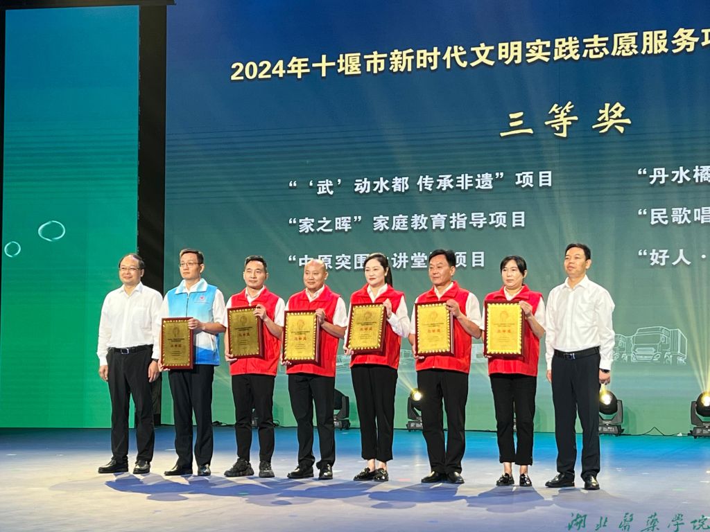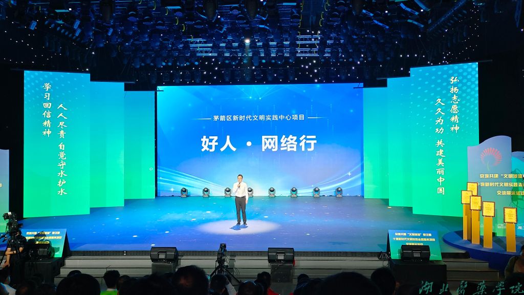 本网讯(通讯员 刘莹)8月21日上午,京堰共建“文明河流”倡议暨十堰市新时代文明实践项目交流展示活动在十堰市传媒中心1号演播厅举行。由茅箭区委宣传部、区新时代文明实践中心组织选送、我校负责实施的“好人·网络行”文明实践项目从全市近80个项目中脱颖而出,荣获三等奖,为全市唯一获奖高校,并在现场进行交流展示。党委常委、组织部部长张海蛟参加活动。
