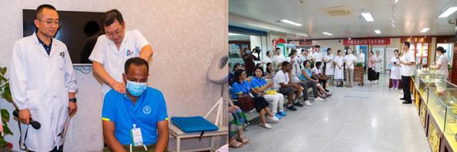在附院参观期间,学员们通过品尝中药茶饮,体验针灸、艾灸、拔罐、推拿按摩等中医特色疗法,深刻感受到了中医药文化的博大精深。 学员Temesgen Tilahun博士表示,“附属医院在患者护理中引入传统中医的方式非常具有特色,这将有助于我们重新认识埃塞俄比亚本国的传统医学,今后的护理和助产学教学中我们也将探索加入传统医学的相关知识”。