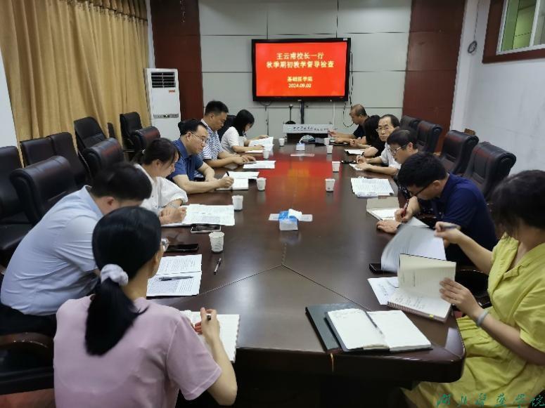 本网讯(通讯员 朱雯)9月2日,由全体校领导带队,教务处、学工处、宣传部、后勤管理处、团委、各教学单位负责人与校级督导专家共同参与,组成7个检查组,开展2024—2025学年第一学期期初教学检查。本次检查实行全校各教学区域全覆盖,通过听课、看课、座谈调研、实地考察等多种方式,对教学秩序、教学环境、师生出勤、教学质量、教学设施与教材准备情况等开展全面检查,及时了解解决检查中发现的问题。