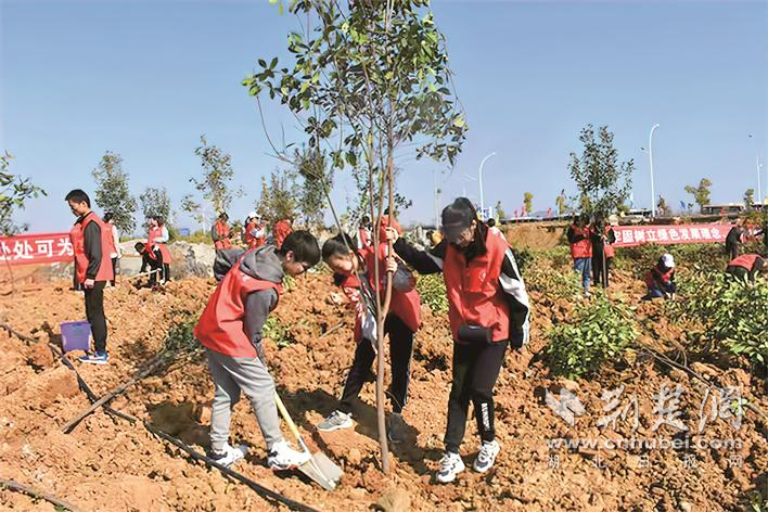 湖北医药学院师生积极参与库区植树护绿行动。学校供图