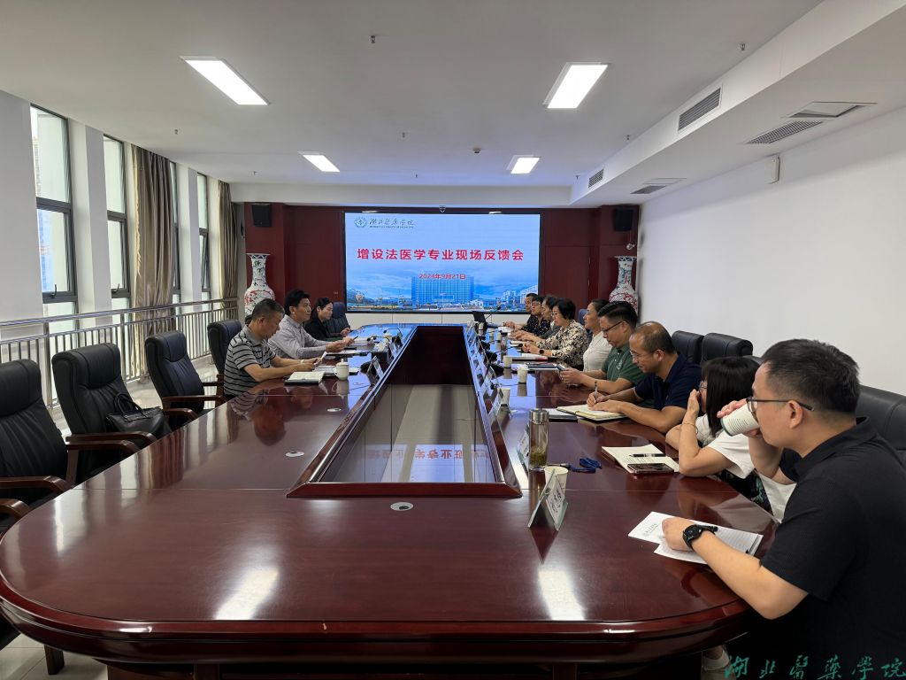 本网讯(文/朱雯 喻言欣 图/何志凯 丁演鹂)9月21日,由湖北省卫健委科教处处长张有元、华中科技大学同济医学院法医系副主任刘茜和武汉大学中南医院司法鉴定所主任鲁植艳组成的法医学专业设置现场评估专家组,对我校申报设置法医学专业进行现场评估。党委书记郑丹凤,党委常委、统战部部长谭艳,教务处和基础医学专业负责人参加评估汇报会。评估会由谭艳主持。