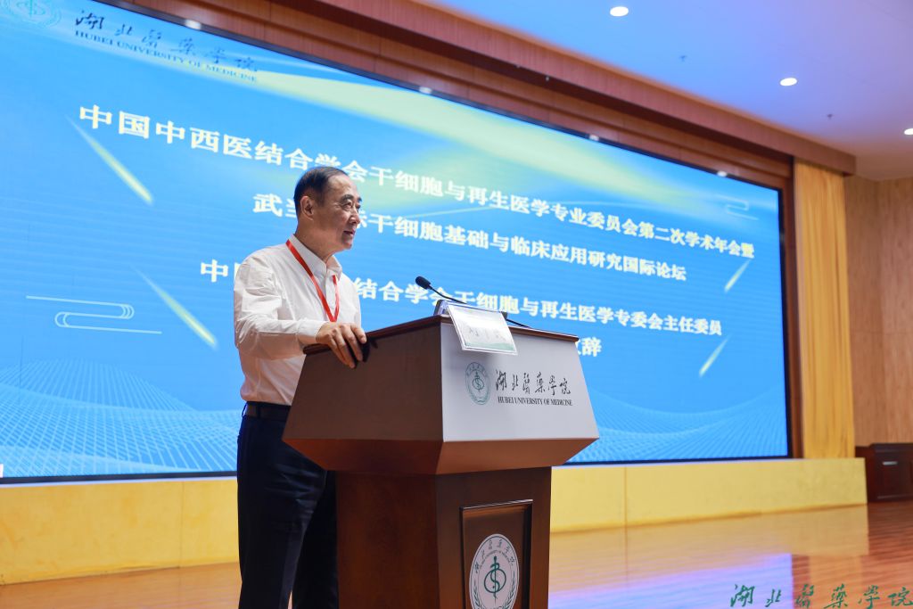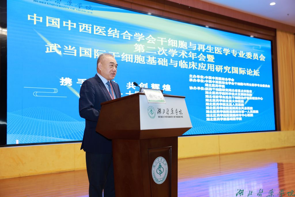 湖北医药学院党委书记郑丹凤致欢迎词。郑丹凤代表学校对各位专家的到来表示热烈欢迎和衷心感谢,并向与会专家介绍了学校的基本情况。她表示此次中国中西医结合学会干细胞与再生医学专委会第二次学术年会暨武当国际干细胞基础与临床应用研究国际论坛,旨在推动干细胞与再生医学的发展,促进我国干细胞领域研究人员深入交流、合作,共同探讨干细胞研究领域关键科学问题。高绍荣院士及中国中西医结合学会干细胞与再生医学专委会主任委员刘中民教授分别致辞,对大会的召开表示祝贺。