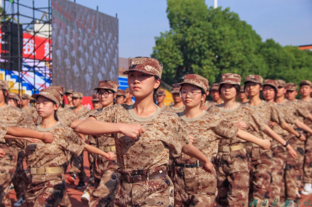 典礼开始前,暖场节目率先精彩上演,点燃全场气氛。歌曲串烧激情四射。军训拉歌《当那一天来临》《一二三四歌》《强军战歌》气势恢宏,展现新生们的蓬勃朝气,田径运动场上余音回荡。