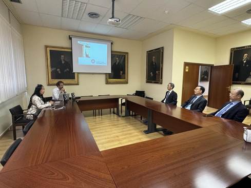 9月24日,代表团访问胡安卡洛斯国王大学,与健康学院院长Carlos Goicoechea Garcia教授会见,就双方在临床医学、口腔医学、护理学、康复治疗学等领域的交流与合作进行探讨,并就未来可以开展深度合作的方向达成共识。双方约定,后期将召开线上视频会议,继续更深入的合作项目洽谈,签署合作备忘录。