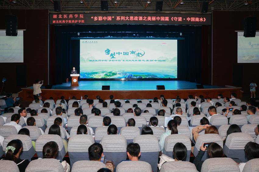 湖北日报客户端讯(通讯员 黄松鹤 龚迎琪 郭继强)一城春色半城水,青山入眼皆成画。9月25日,湖北医药学院特别策划制作的“多彩中国”系列大思政课之美丽中国篇《守望·中国南水》在该校学子会馆三楼倾情开讲。来自京堰两地的高校教师、志愿者、企业家、农民、思政辅导员、理论宣讲员等各行各业人士登上该校大思政课讲台,为现场近两千名师生、线上直播近万名观众讲述了南水北调中线工程通水10周年来,京堰人民守护绿水青山、护好一库净水,将大爱融入一泓清水的动人篇章。