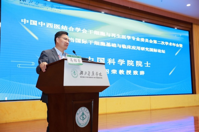 湖北医药学院党委书记郑丹凤致欢迎词。她代表学校对各位专家的到来表示热烈欢迎,并向与会专家介绍了学校的基本情况。此次国际论坛旨在推动干细胞与再生医学的发展,促进我国干细胞领域研究人员深入交流、合作,共同探讨干细胞研究领域关键科学问题。高绍荣院士及中国中西医结合学会干细胞与再生医学专委会主任委员刘中民教授分别致辞,对大会的召开表示祝贺。