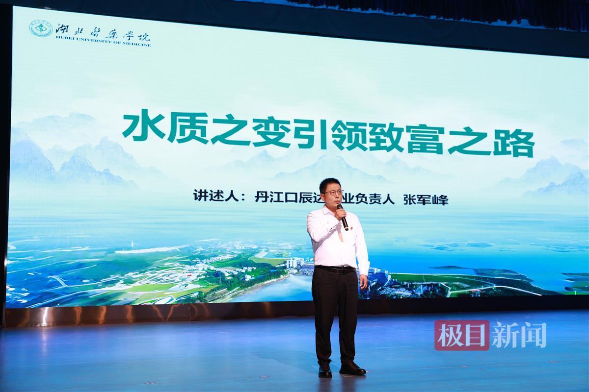 “这是我们在北京每天喝的水,更应该自己参与,把一库碧水保护好……”9月25日,在湖北医药学院学子会馆三楼,来自京堰环保联盟的志愿者李久存正在一个特别的课堂上,面向该校现场近两千名师生、线上直播近万名观众讲述北京“环保奶奶”贺玉凤的故事。这堂课正是湖北医药学院特别策划制作的“多彩中国”系列大思政课之美丽中国篇《守望·中国南水》。